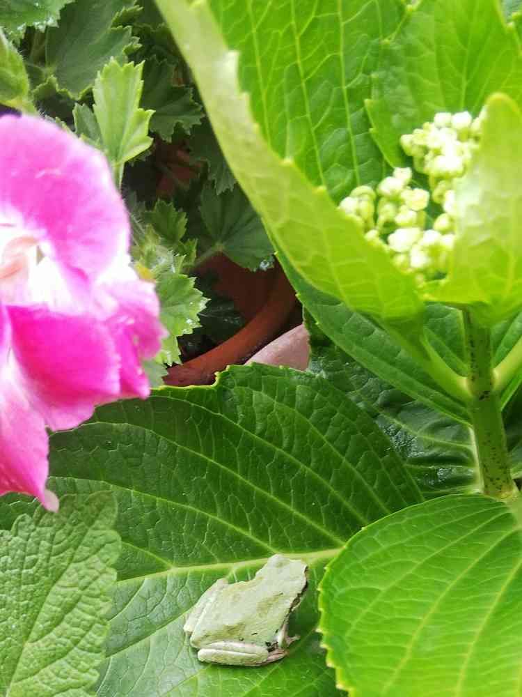 あじさいの葉に、お友達・・・🐸