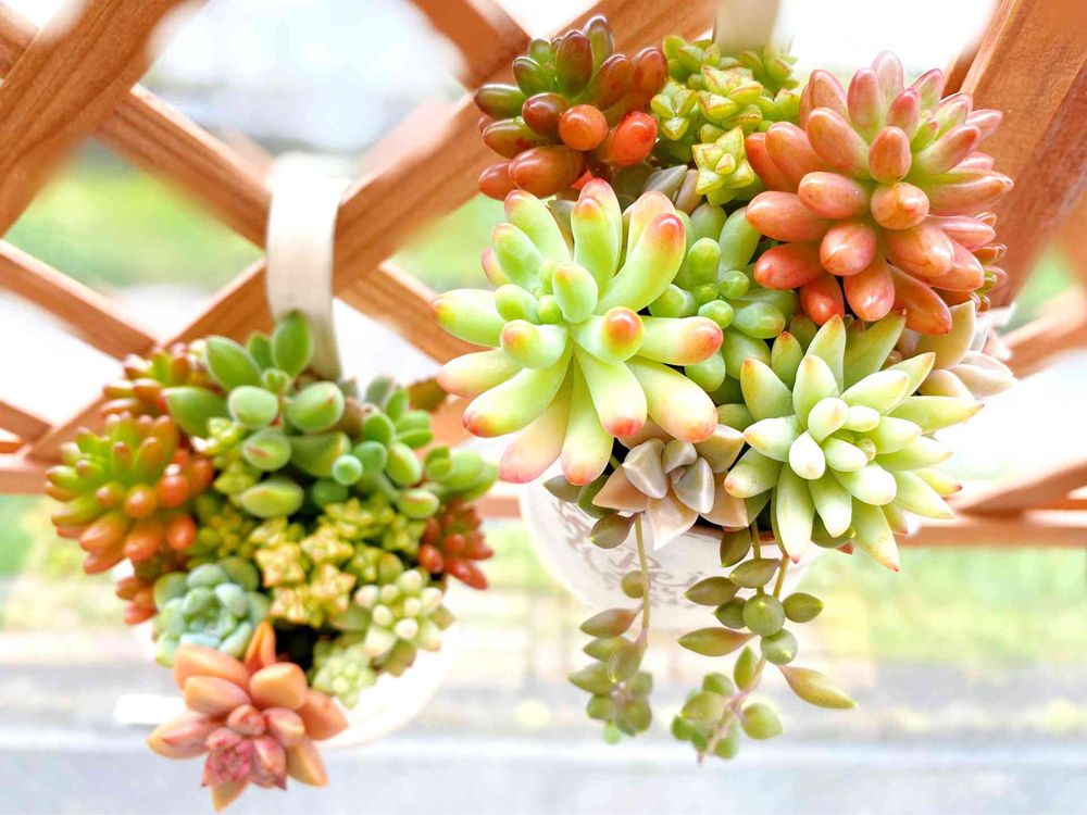 先日、教えていただいたセレナのポットに多肉くんを三種ほど植えてみました☺️恥ずかしながら〜😊そしてラティスに吊り下げてます!