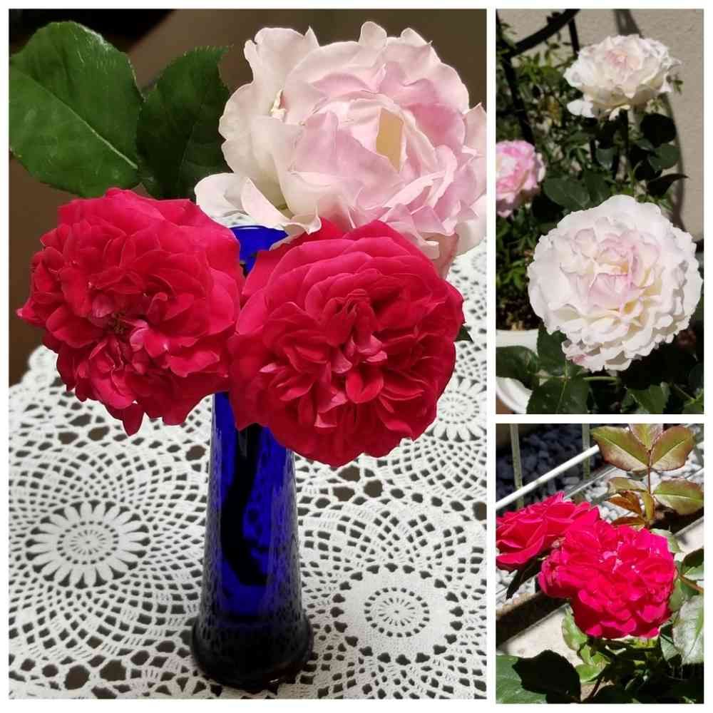 雨が降る前にセラフィムとスーリール・ドゥ・モナリザを花瓶へ…🌹☺️
