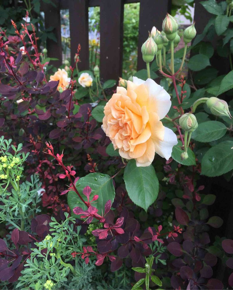 アプリコットの可愛いバラですが、こんなカラーリーフと合わせると少し大人な雰囲気です🎵