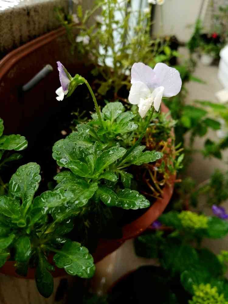 去年のビオラが種を落としてくれてて咲いてた。でもハンギングではなく鉢植えだったはずだけど、種ってちゃんと飛ぶんだな。