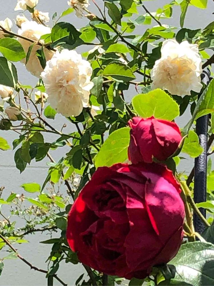 ルージュさんもアーチに誘引するはずが、あまりに枝がごつくなり断念💔スクスク真っ直ぐ伸びています。