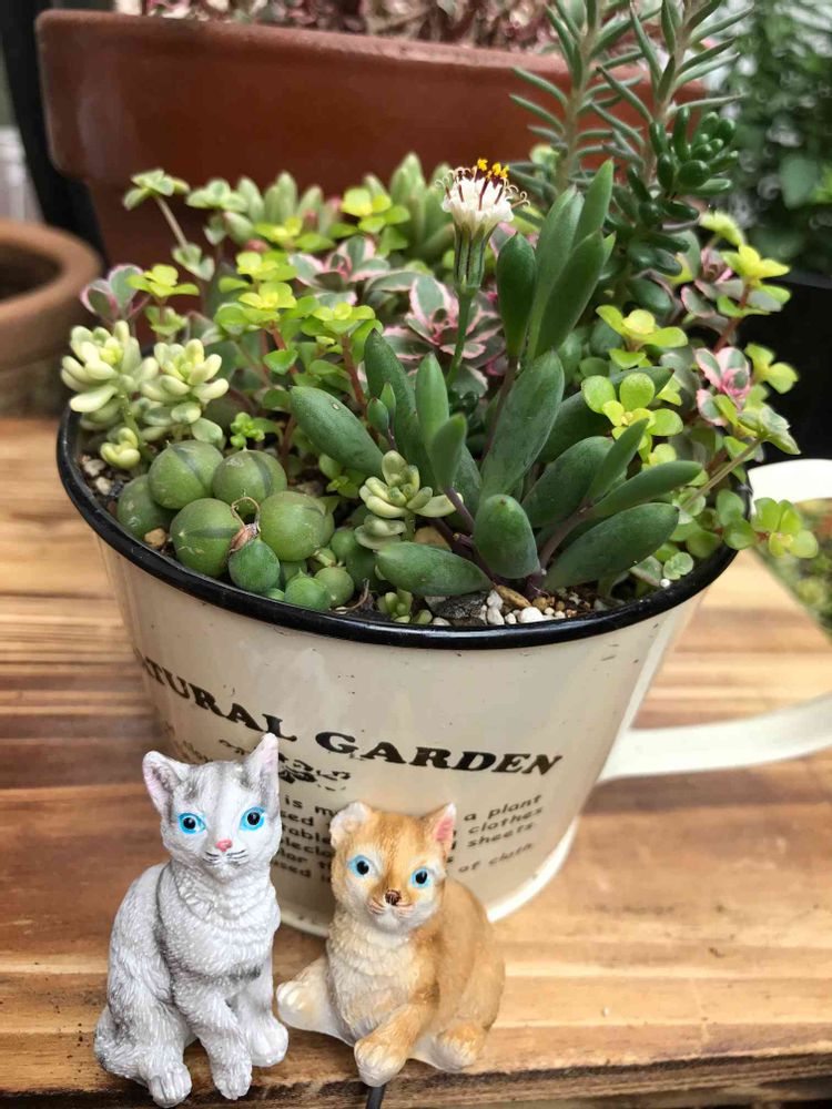 二匹の🐱私もセダムの寄せに座って貰ってますよ😉