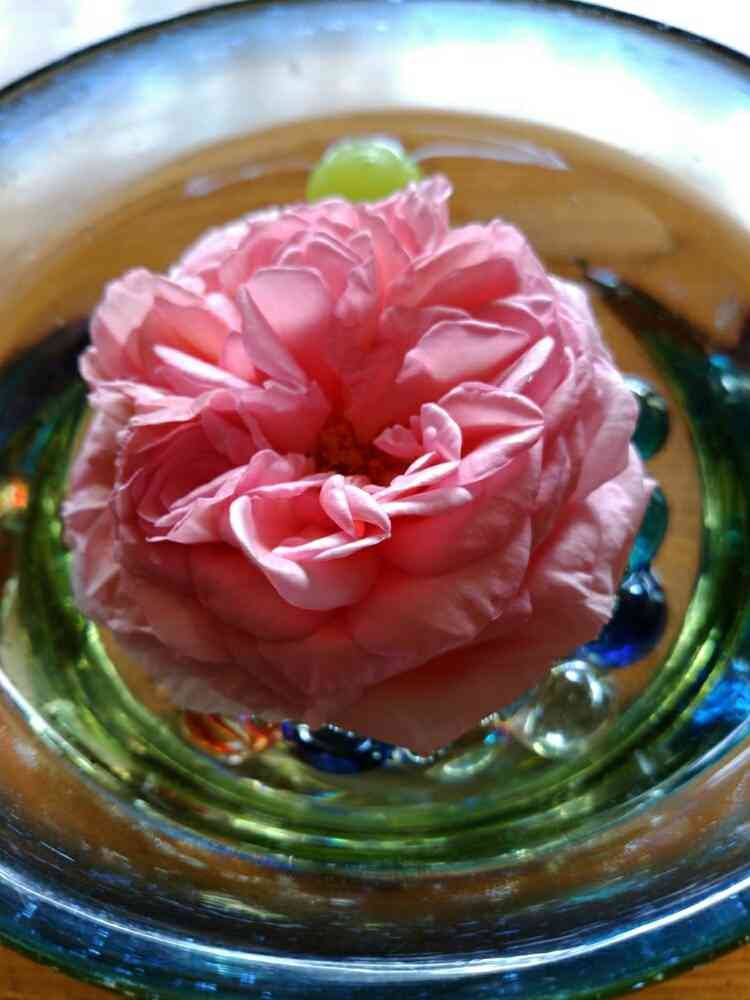 アブラハムダービーは頭が重くて茎が細いので開いたら切って浮かべます。