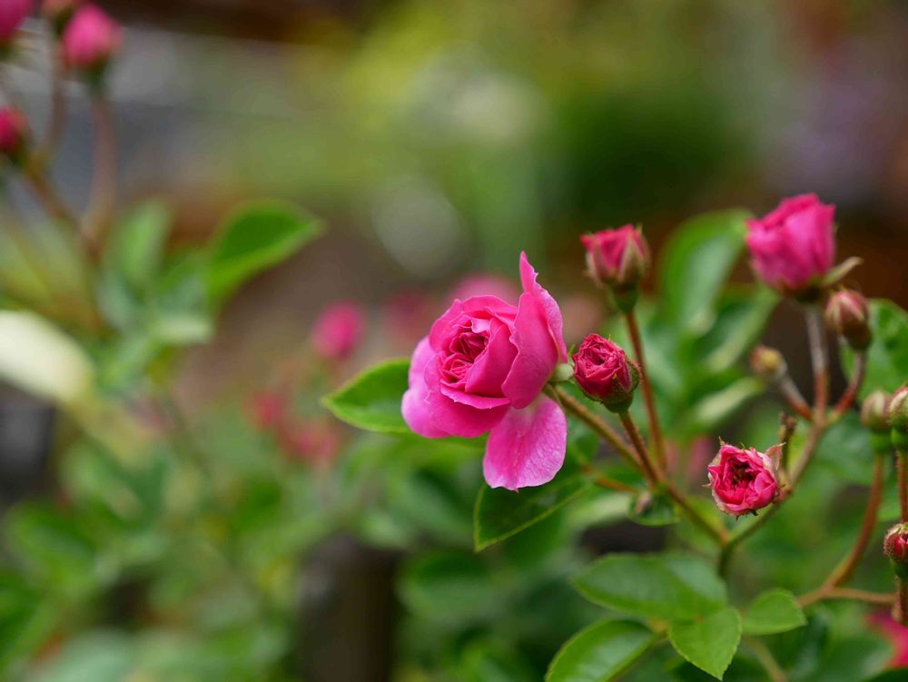何時もながら、画像が鮮やかで素敵ですね。しかも1本の挿し木から立派に育てた薔薇とは凄~い!うちにも似たような小輪のショッキングピンクの薔薇があるのですがピンクスワニーという種類です。こちらとは違っていますか?
