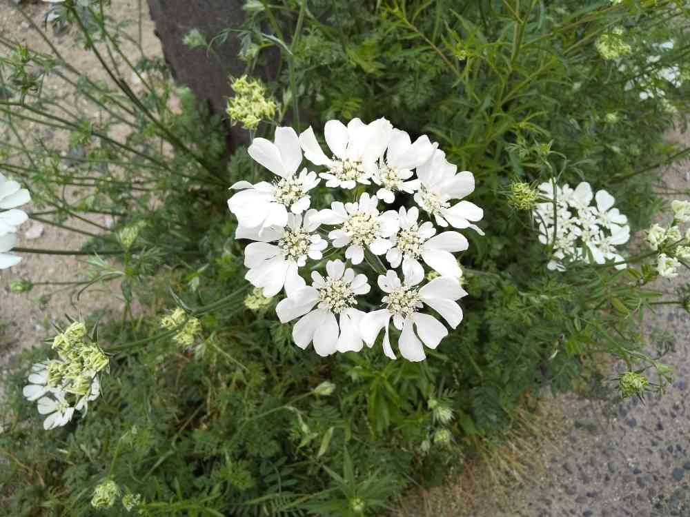 道端でみかけた花。絹さやみたいなものがひっついてたので種かな。