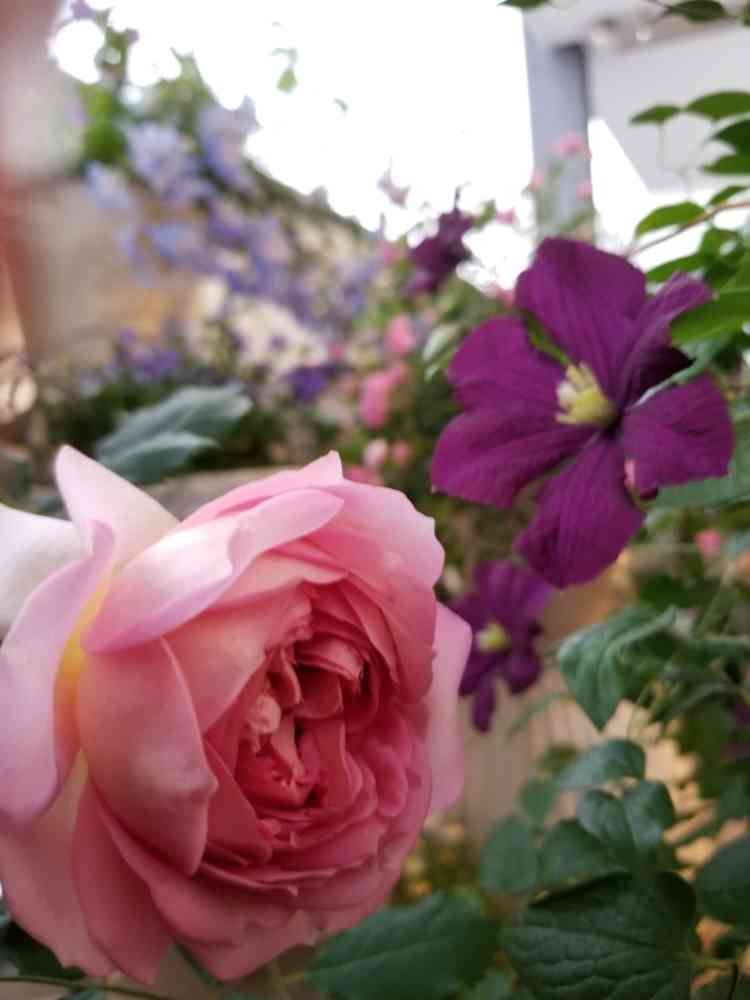 ピンクのバラと、紫のクレマチス、あいますよね😊🌸