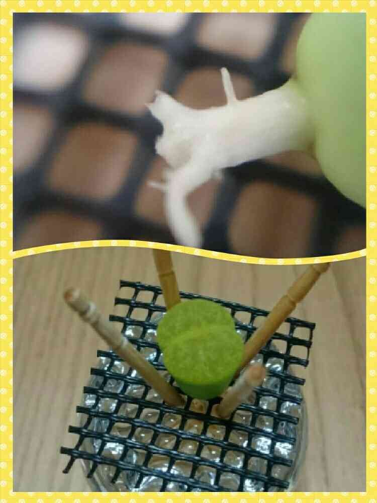 アボカドの水耕栽培で種を爪楊枝で支えるの思い出して…(笑)