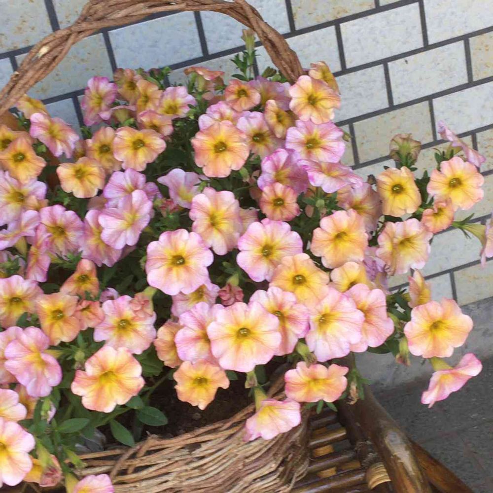 midorin❤︎さんの玄関,カゴアレンジ,大好きペチュニア&カリブラコアの投稿画像