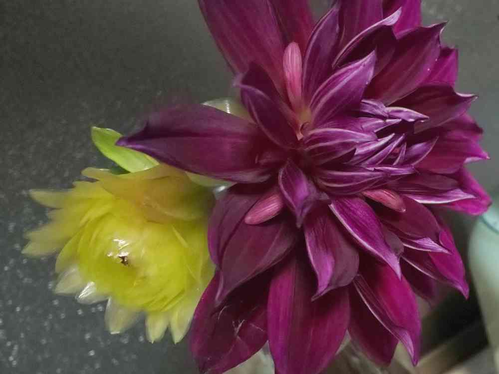 花瓶に飾ってから出て、八時間、、、帰宅するとdahliaさん無惨に散ってました😱