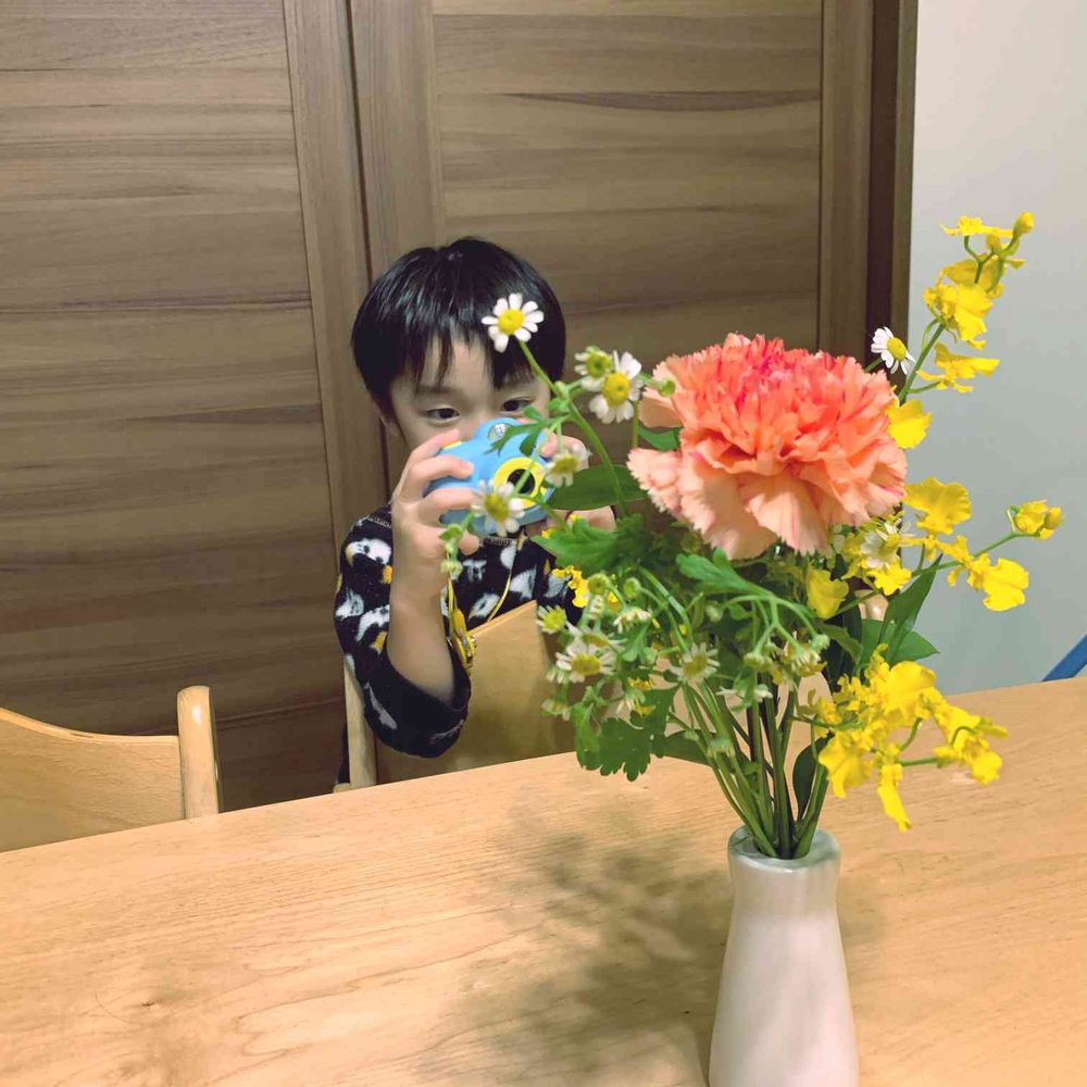 子供達に最近プレゼントしたキッズカメラを手に2人で何枚も何枚も撮って喜んでいました📷(+その姿とお花を撮る私も一緒にパシャパシャ笑)