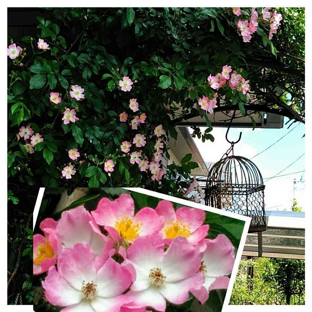 情熱的な赤い薔薇も良いですが小さいピンクの房咲き可憐ですね。