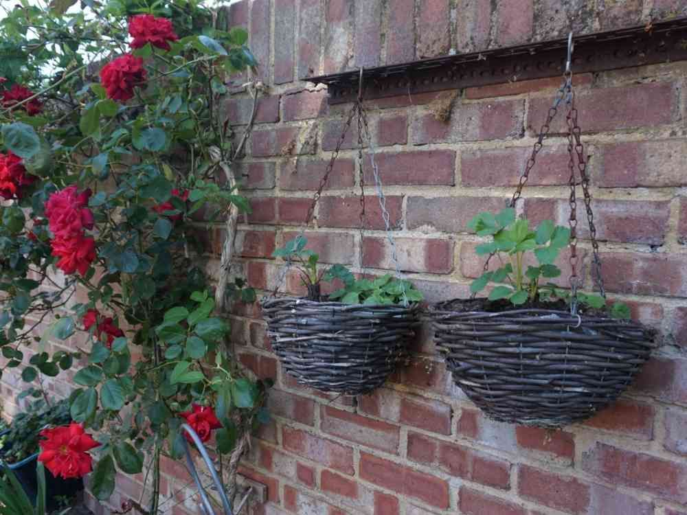 今年は、新しい苗が買えないので増えた苺の苗をハンギングバスケットに植えてみた。安全だと思ってたけど、やっぱりカタツムリとナメクジがここにも登ってくる〜😫