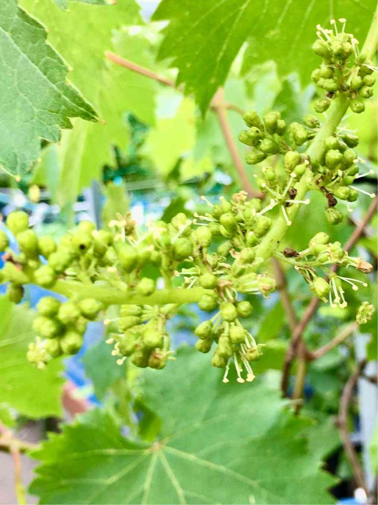 🍇のお花、小さくて白っぽいの!これがブドウ色に変わるから不思議Σ(-᷅_-᷄๑)💦