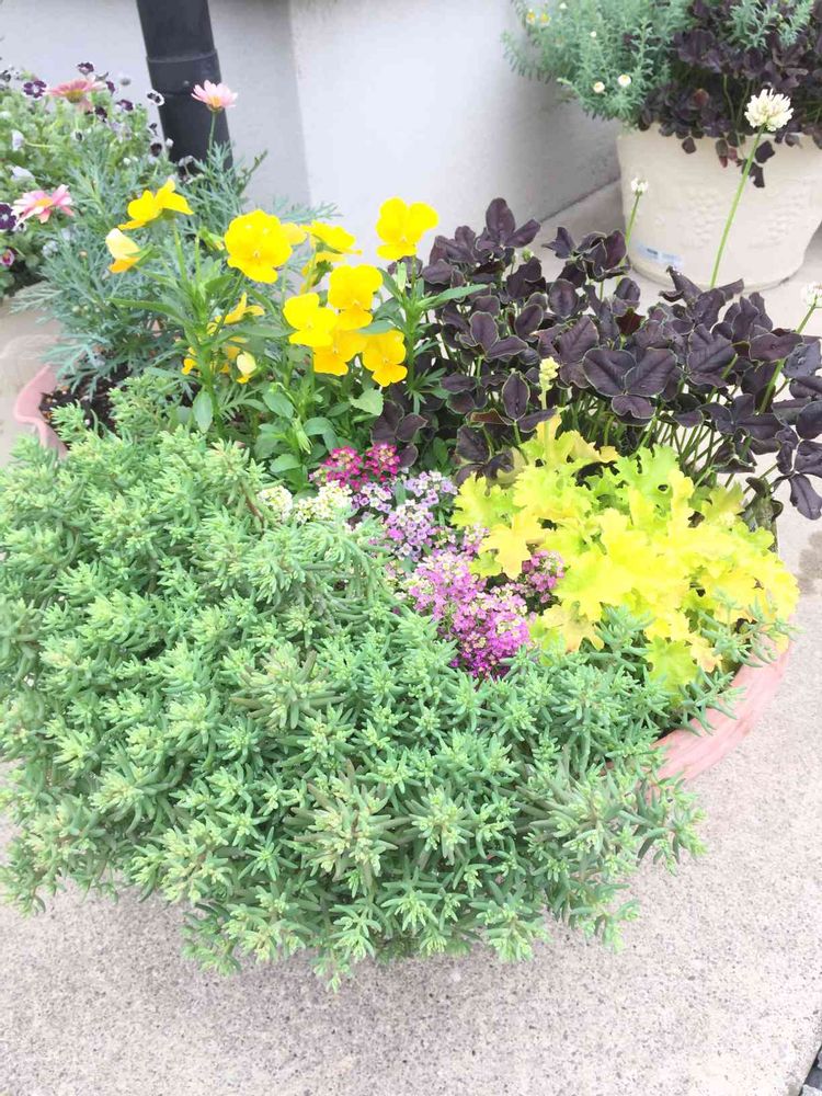 ビオラとアリッサムとクローバーの寄せ植えに少しだけパリダムを挿しといたらこんなになっちゃったょぉ!!!!!