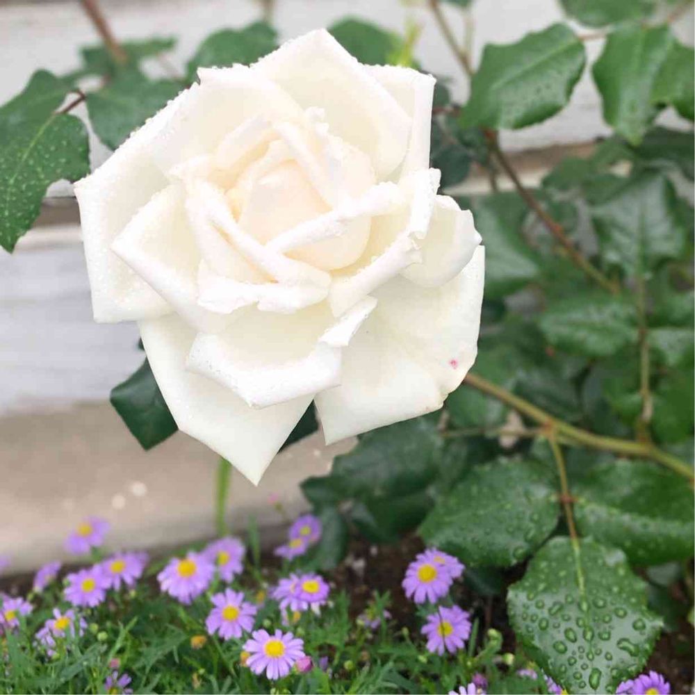 美しい白薔薇ですねー😊新雪というお名前ぴったりの清純な白ですね😍