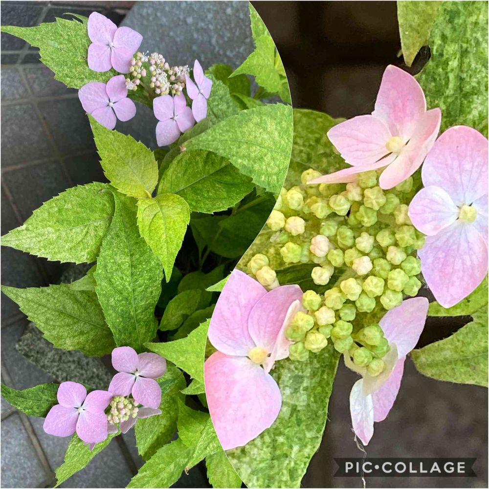 5/13にアップしたヤマアジサイ(右)が花、葉の色が少し濃く色好いてきました🌸🌱
