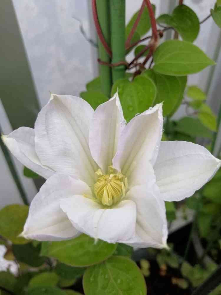 葉っぱ🌿さんがどんどん伸びていたクレマチスにやっと蕾と真っ白なお花が咲いてくれてま〜す💞