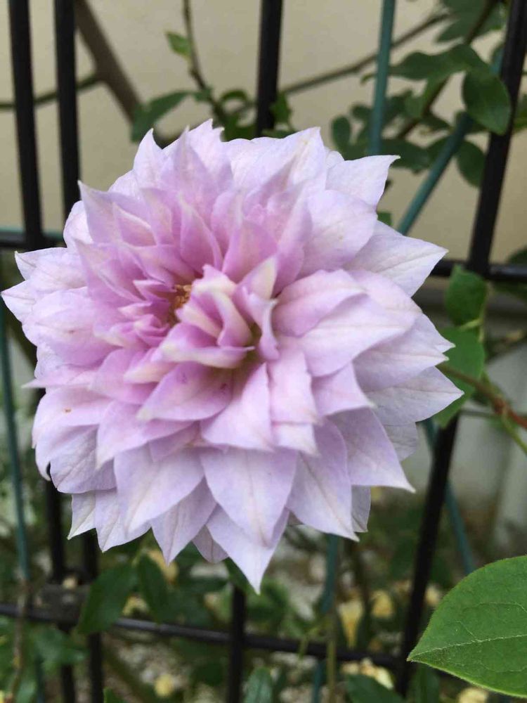 昨秋に鉢植えから地植えにしたクレマチス。ツルはあちこち自由に伸びているもののツボミは1つしか見当たらず…その唯一のお花が咲きました*