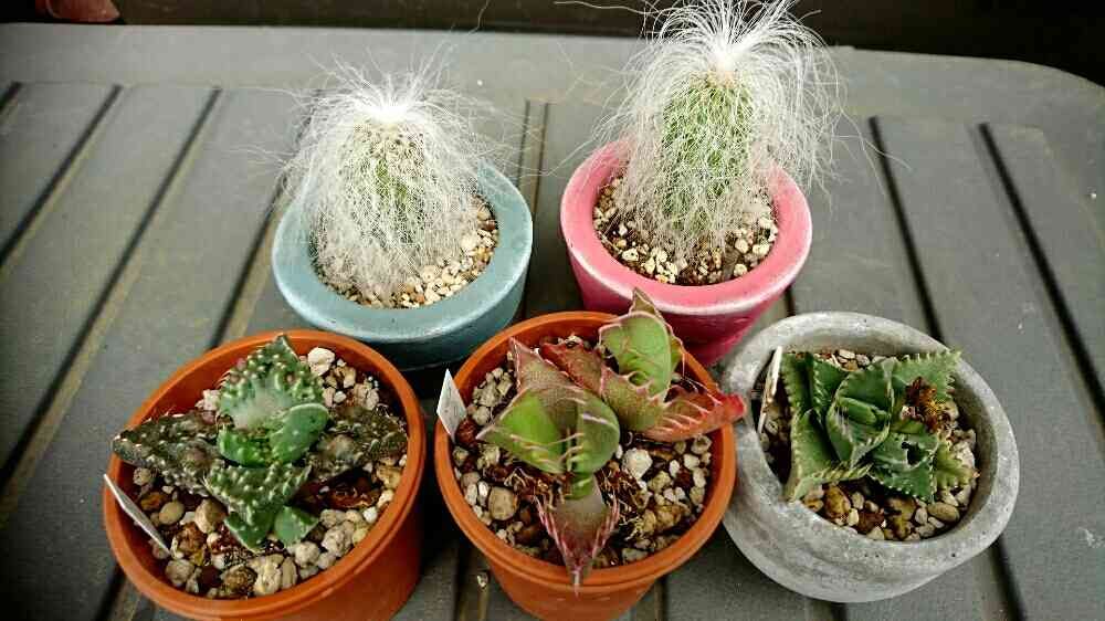 後ろのサボちゃんは、種から蒔いて六年目。