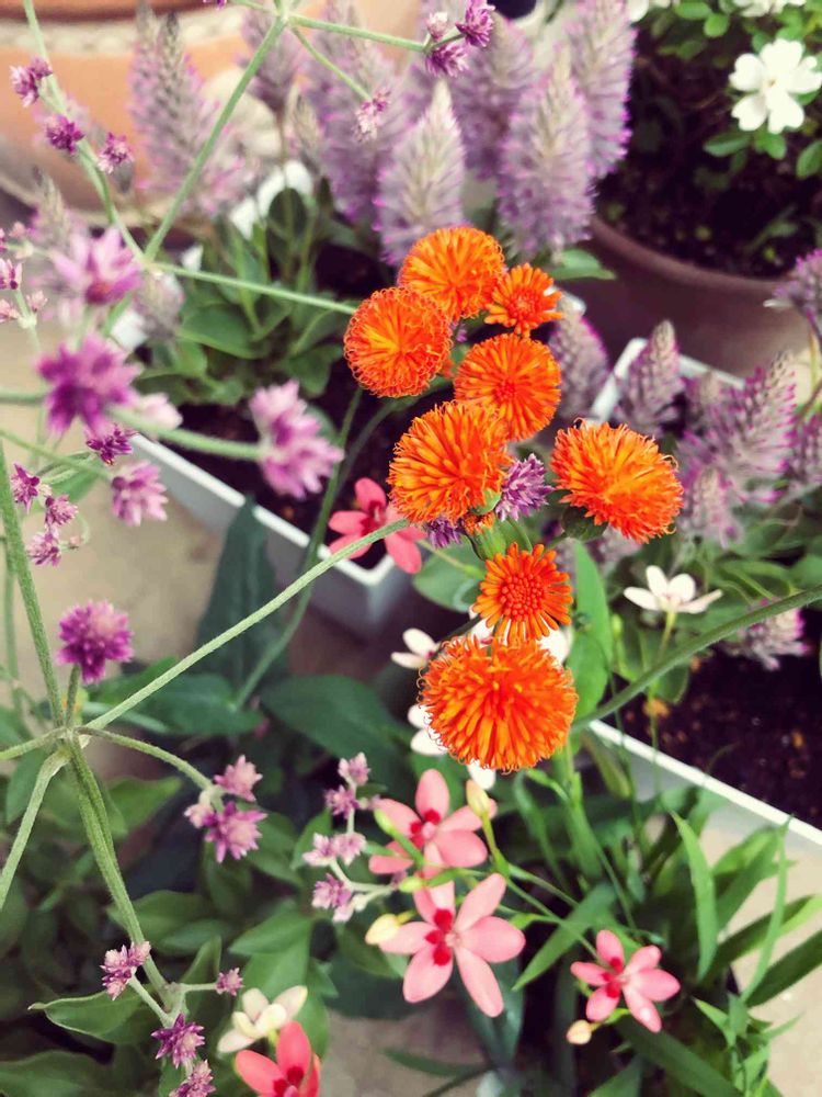 丸いオレンジの花が鮮やかです。でも一年草かな?