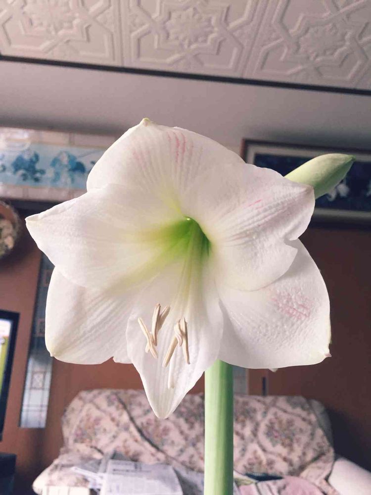 通称「ばあちゃんの花」。今年亡くなった義母の好きだったアマリリスの色変わりの球根を植えたら、花が咲いてくれました。なんて上品な色なんだろう。天国で見てくれてるかな❓