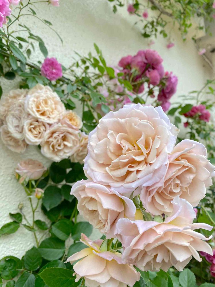 バラがこんなに上に下にあふれて、皆さんで作られた板壁ももう見えないほど(♡´▽`♡)