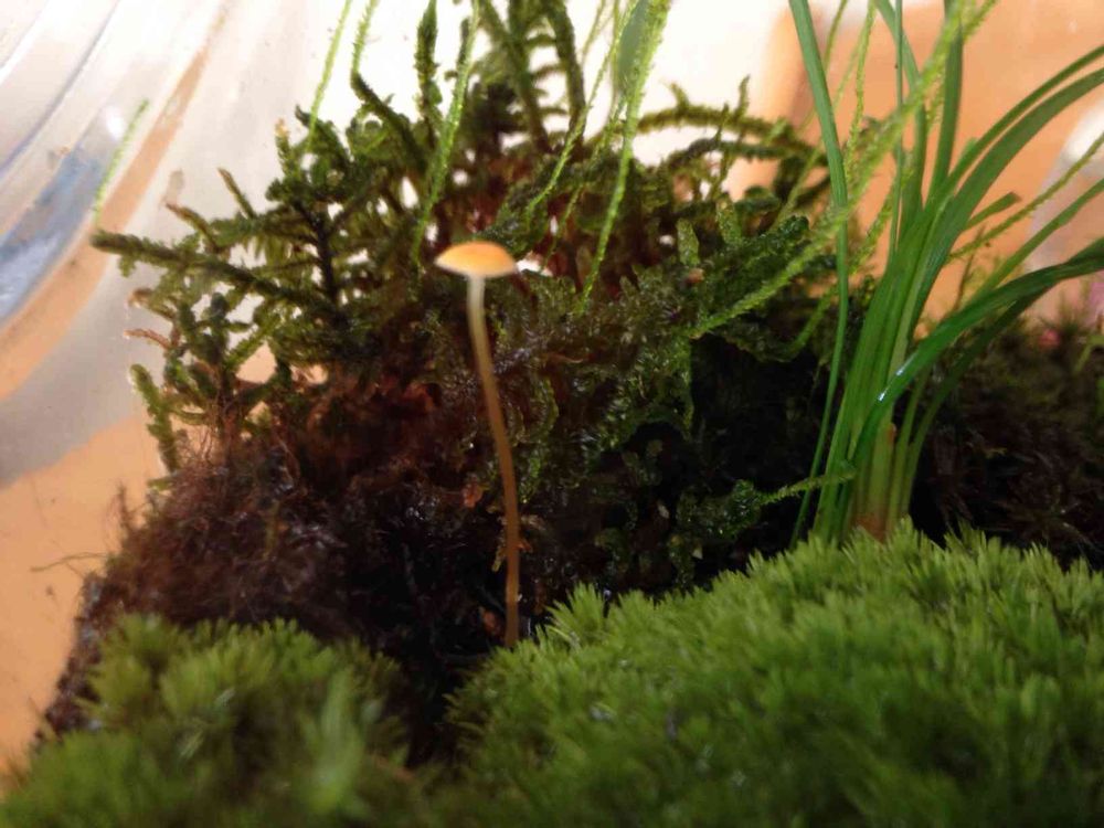 面白い〜(≧∇≦) ウチのには小さい双葉がひょろひょろ〜っと😁 虫も最初の頃にすごく小さいウニョウニョしたのを見たけど、その後は出てきてないです💦 ウチのにもキノコでないかな♪