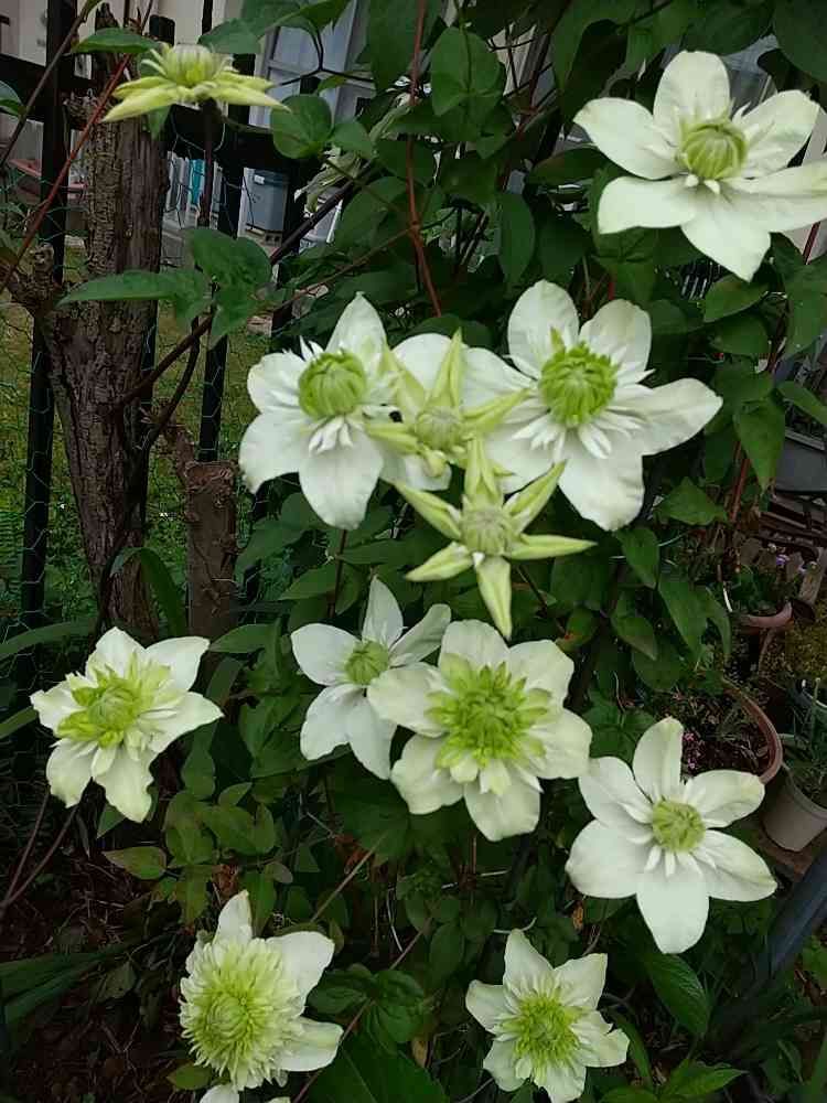 前から欲しかったクレマチス、白万重。たくさん咲いてくれました。😊✨
