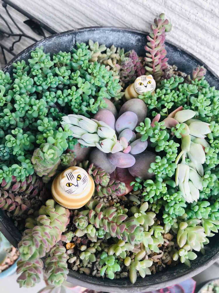 セダムとニャンちゃんのコラボ可愛いですぅ〜( *ฅ́˘ฅ̀*)💕