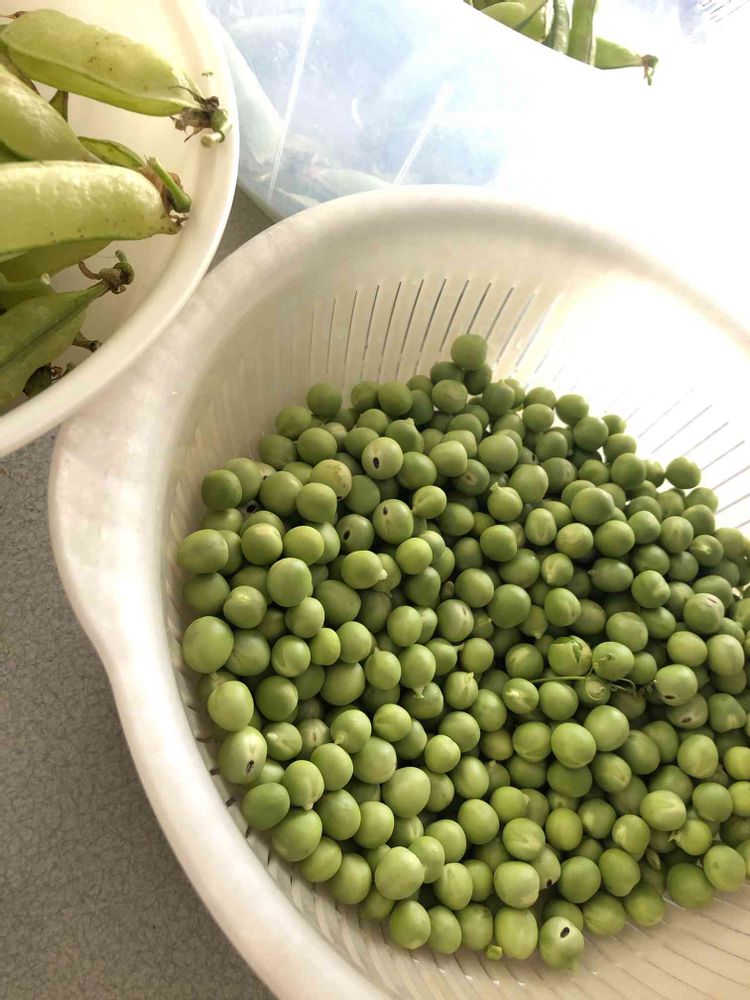 今日は休みなので収穫した実えんどうをひたすらむきむき。