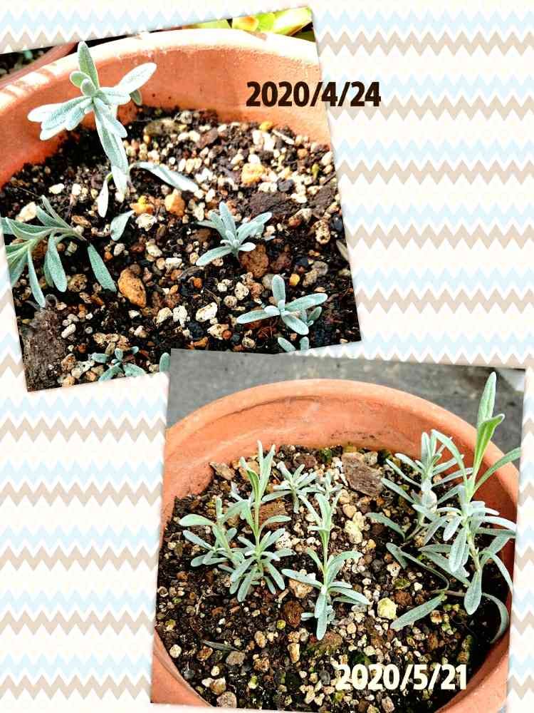 不規則に伸びてしまったシルバーリーフラベンダーの枝をカットした時、捨てるのが惜しくて、やり方も調べず、土の上に寝かせ、土をかけてそっと見守る事1ヶ月。根付いてなさそうだったのに、気づけば成長していました🌱😍🌱