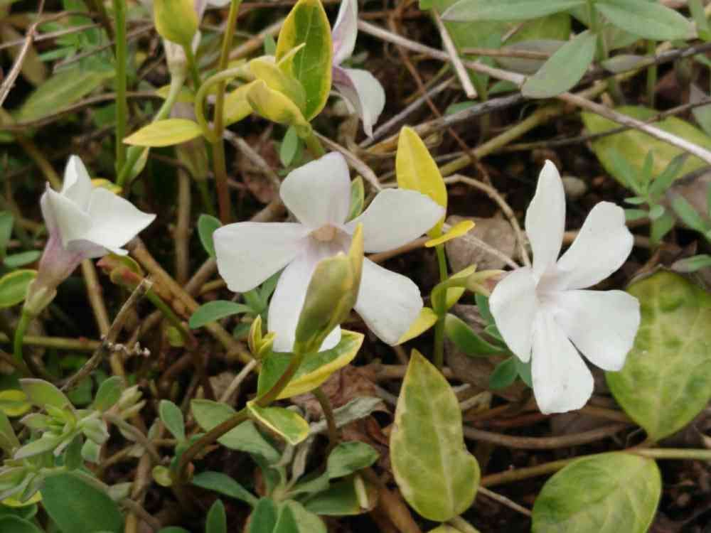 こんにちは😃白いヒメツルニチニチソウは珍しいですね。紫のは、うちにもワサワサあります。😊