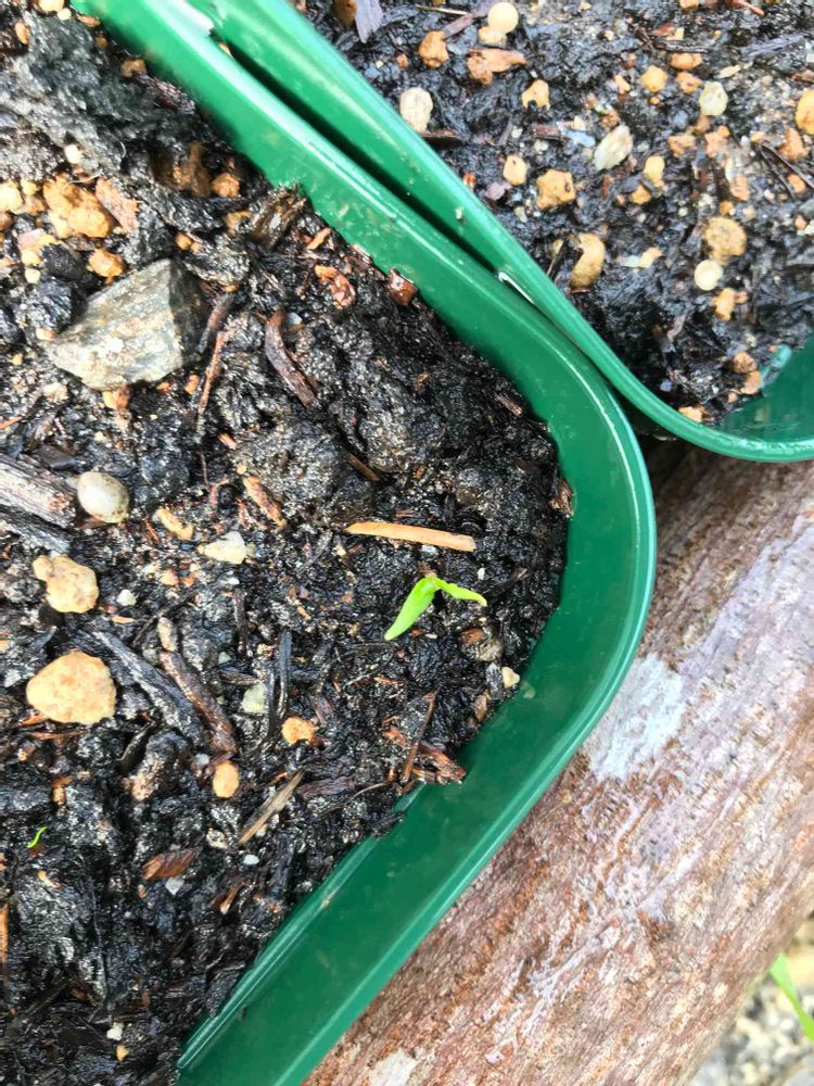 キャンディランタンのポットに一個だけ、芽が出てきた…(・∀・)
