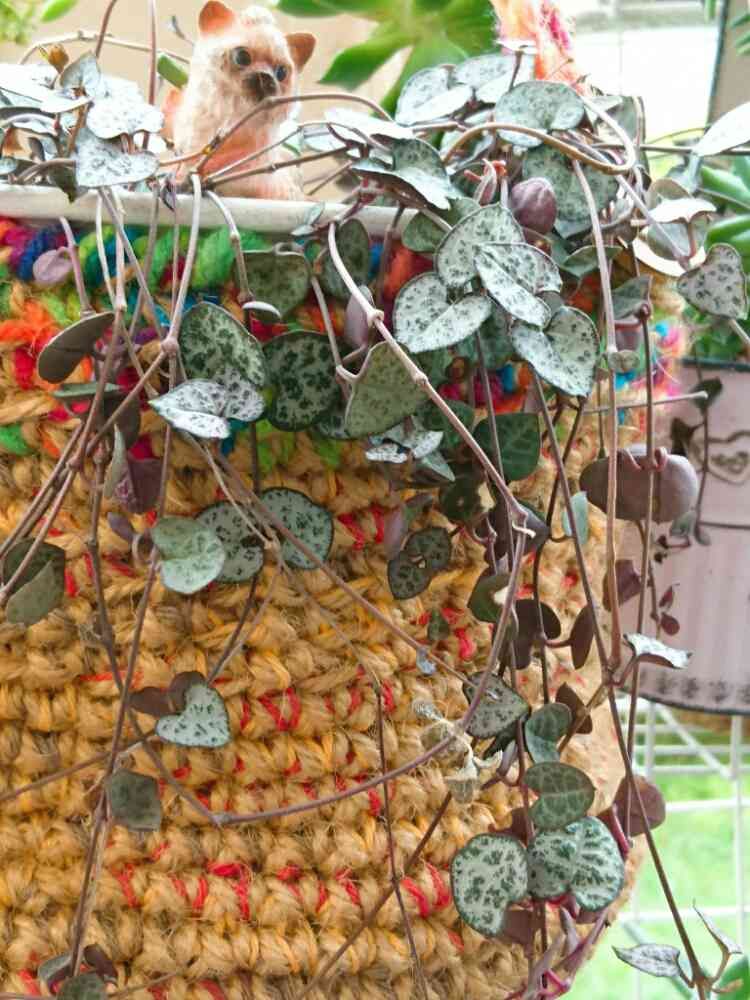 ハートカズラ🍀を巻き巻きしていましたが伸びて垂れ下がりぎみに😁🍀