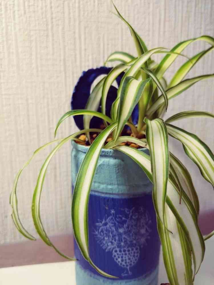リメ缶にオリヅルランを植えてみました。このリメ缶は、少し失敗してしまったのでそんな誰も見ない自分の部屋においときました。