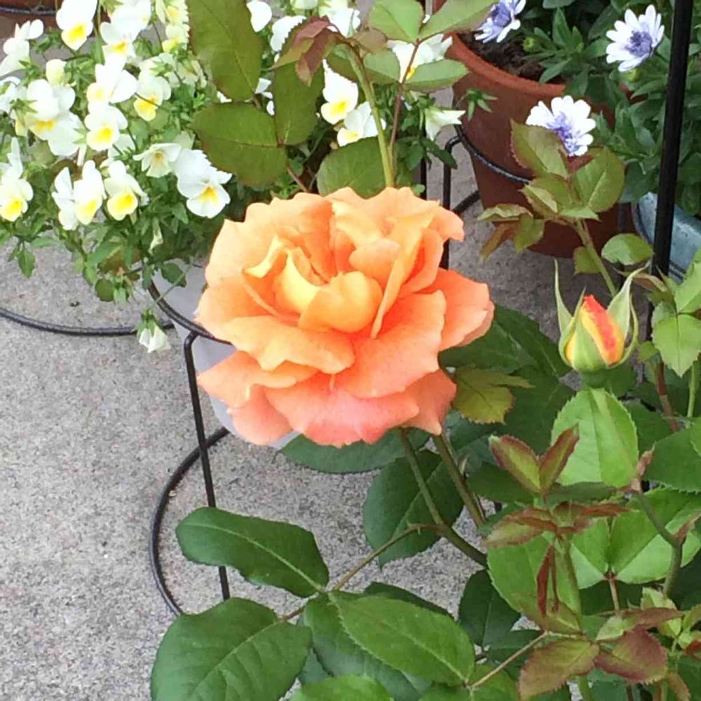 我が家に初バラです。まだ一輪ですが綺麗に咲きました☺️