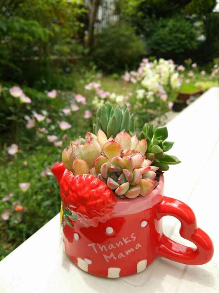 ほんと お値段以上で 日頃 赤は 我が家に 無い 色 多肉ちゃん 赤色が まだまだ 少ないので このポットが 加わって 明るくなりました🎵
