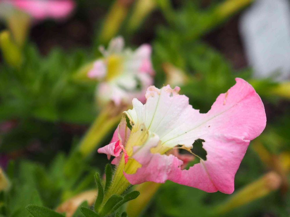 このペチュニアの根本にはまるまる太ったおなかピンクのヤツが…