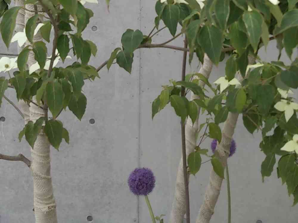 やまぼうしの下に咲いている紫の花は?