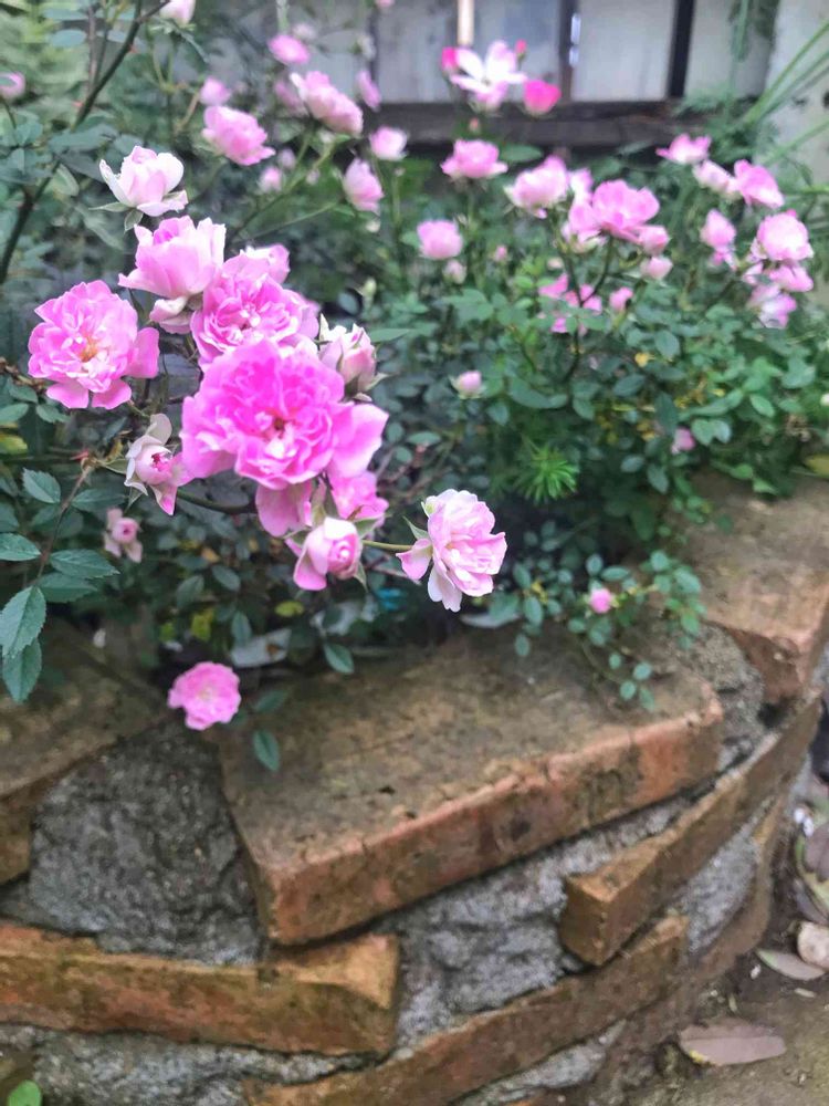レンガにマッチしてて👍いい感じで咲いてますよん(^ν^)