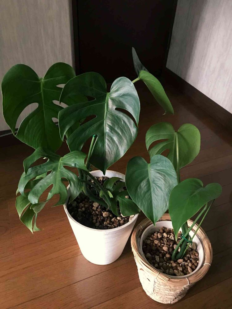 昨日ようやくモンステラを仕立て直しました!😅今回は支柱をつけてバランス良くしてみました😄いつもはキッチンと居間にそれぞれ居ますが、久しぶりに揃ってピカピカの葉っぱ😍