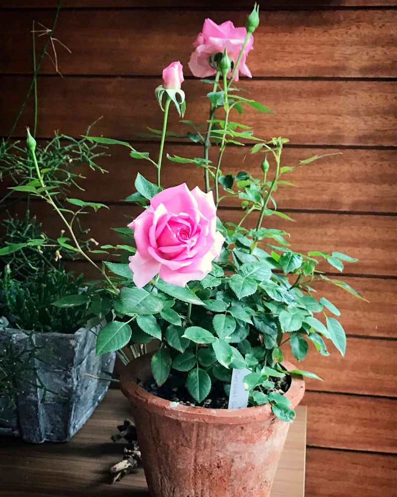 ミニバラの良いところは、こうしてあちこちに持ち運びしやすいこと。