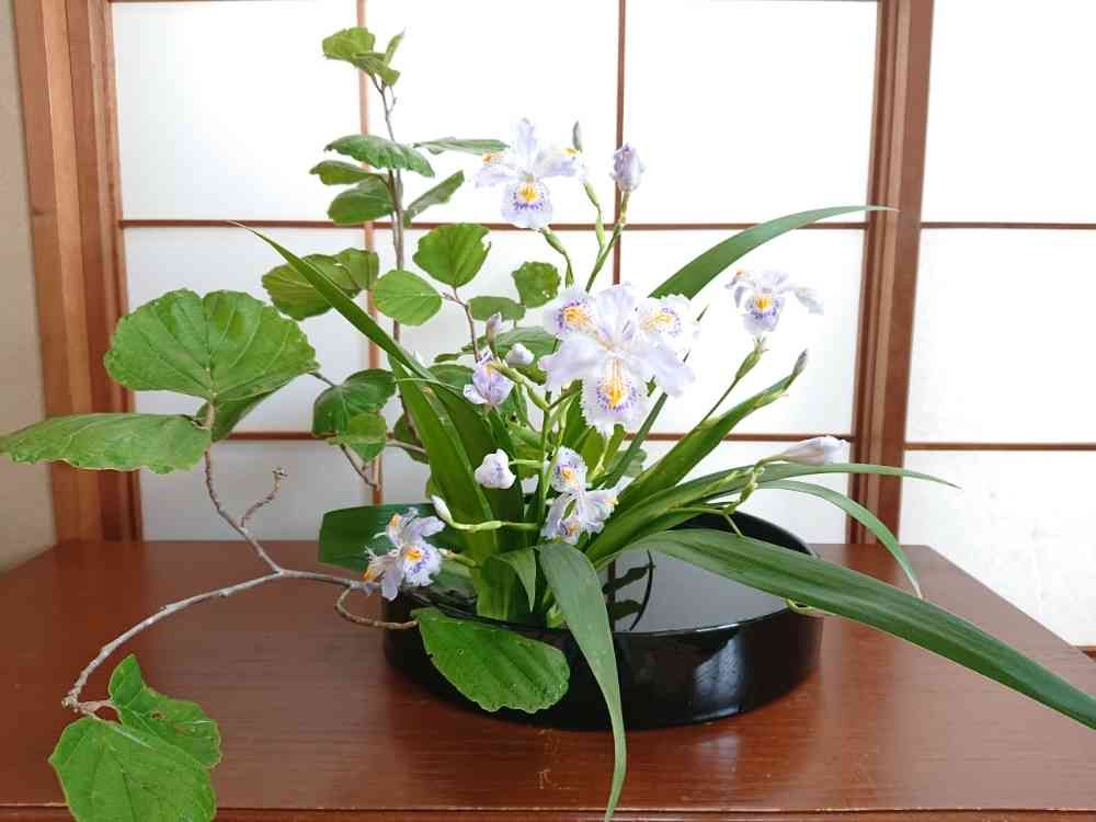 しゃがの葉は いけばなを生き生きと見せてくれる便利アイテムですね😉
