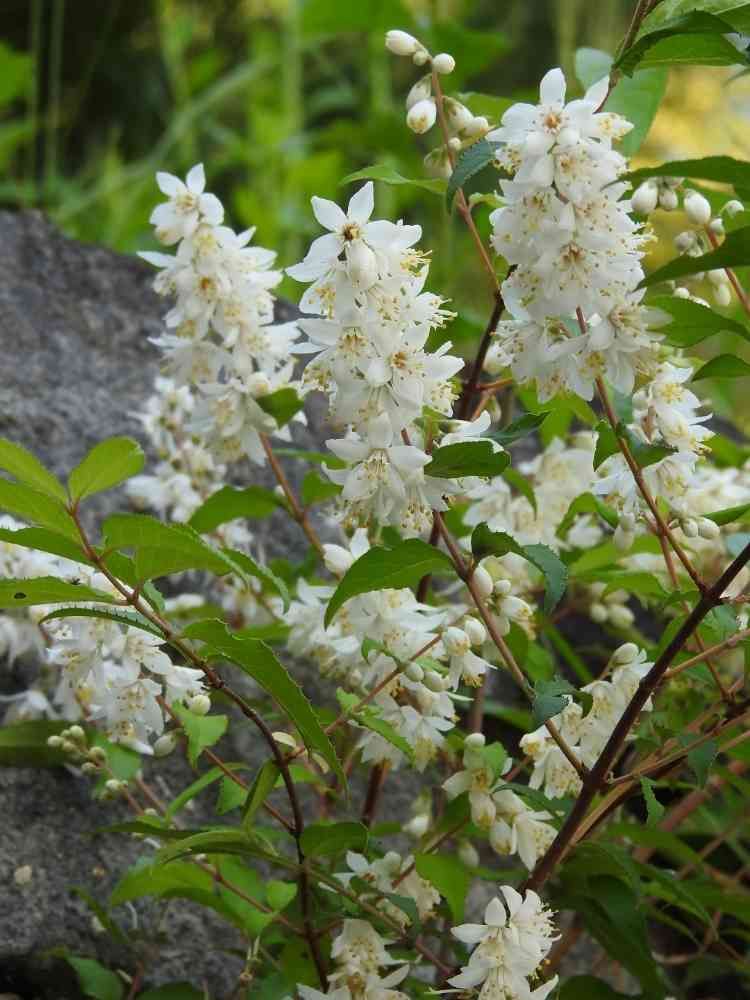 民家の石垣で🌸咲くヒメウツギの花🌼