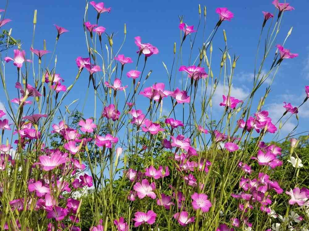 ムギセンノウ(アグロステンマ)が青空に映えてます。