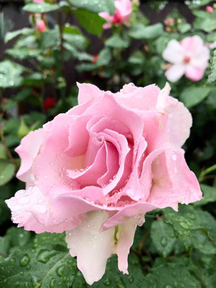 優しい淡いピンクの花びらは少しウェーブが有りとても繊細で綺麗な薔薇です。