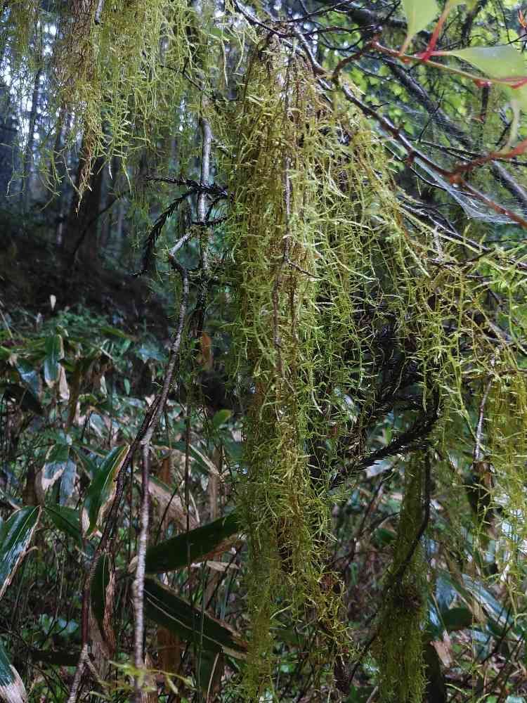 高標高地等、1年中霧の発生しやすい場所に生えるサルオガセ類。これの密生する一帯は熱帯雨林みたいな雰囲気があります😊