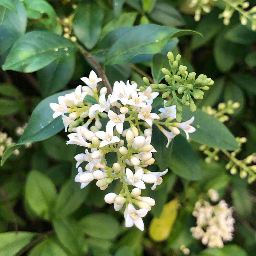 イボタノキ、セイヨウイボタノキ、はどうかな?と思い画像を見ていたのですが、イボタノキの花と蕾はもう少し細長い印象がありましてーー