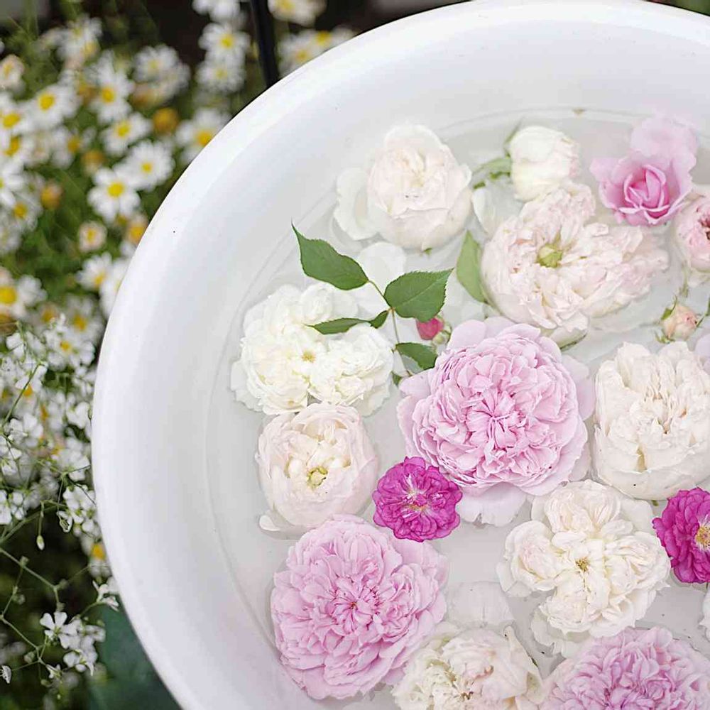 映画なんて💓激狭庭の一角で洗面器に浮かべたバラですよー🤣💓